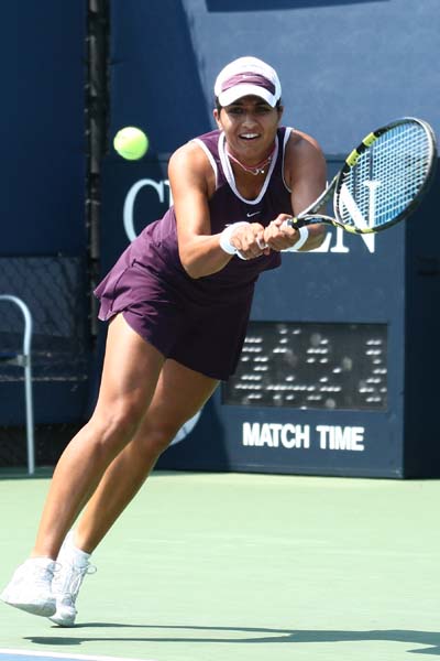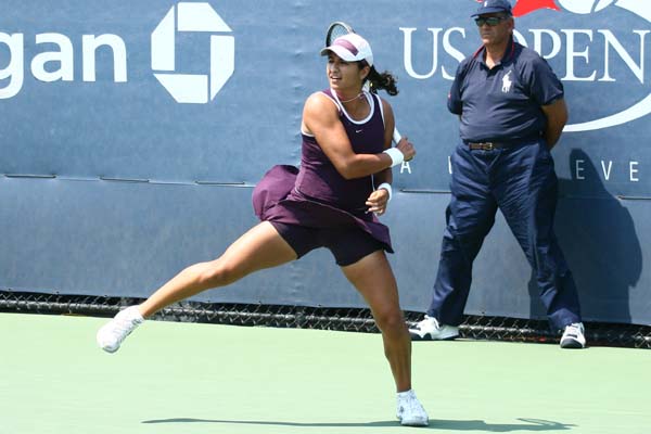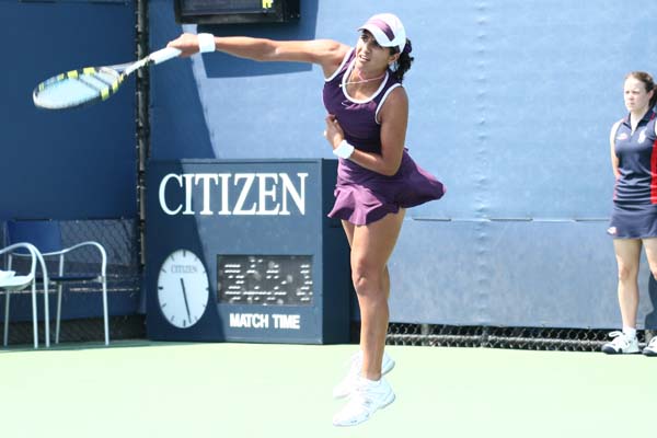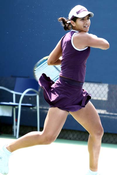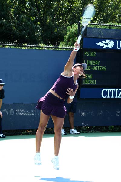 After Neha just managed to win their serve at the beginning of third set, she played their weakest part of this match now and got broken twice to be 1-5 behind at own serve. Not much to say about these five game, she just did not manage to put pressure on her opponent at all. Though Neha made a clean sweep now to change the score to 2-5, the match seemed to be over now - but Lindsay struggled with her nerves and gave away the next game at her serve by committing three double faults. Neha won the next game at own serve and was just 4-5 behind now. 0-15, 15-30, 30-40 - our girl was in the lead again and again, but Lindsay found the correct answers. Neha even had a second break point at Ad Returner, but failed again. Lindsay finished off the match now and advanced to the second qualies round after a battle of two powerful fighters. Nevertheless, the Uberois and the coaches very unpleased about Neha's match. Of course, I can definitely understand the disappointment after having had a match point, but I was very impressed how much former tiny Neha had improved in the two years since I saw he playing for the last time at the US Open 2004.