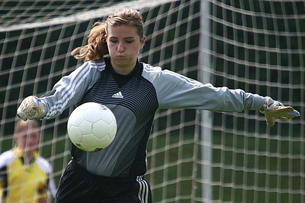Die Partie begann eher verhalten ohne Gelegenheiten auf beiden Seiten. So war es doch etwas überraschend, als in der 10. Minute plötzlich Melanie Weber frei vor dem Tor von Klara Muhle