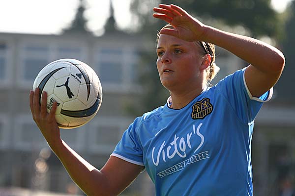 Die ersten zehn Minuten der Partie hätte man noch getrost an der Würstchenbude verbringen können, letztlich gab es neben viel Mittelfeldgeplänkel vor allem Fehlpässe zu sehen. Doch Wattenscheid brachte dann erst einmal Fahrt in die Partie: nach einer Ecke versagte die Saarbrücker Abwehr, ließ Mira Möller aus gut zehn Metern schießen und wurde dafür mit dem ersten Gegentreffer bestraft. Doch auch wenn die Partie nun von Wattenscheid kontrolliert wurde, gab es auf beiden Seiten keine Torchancen. So war die nächste gute Wattenscheider Chance bezeichnend: bei einem harmlosen Schuss der Gastgeberinnen rutsche Romina Holz im Tor der Saarländerinnen auf der Torlinie weg, doch konnte den Ball noch gerade so abwehren. Eine Minute später machte es Wattenscheid, bei denen inzwischen Melissa Thiem für Ninaus gekommen war, besser: Daniela Löwenberg spurtete mühelos an der ganz offenbar seit längerem angeschlagenen Ann-Kathrin Schinkel vorbei und bediente die freistehende Caroline Hamann mustergültig. Diese schob den Ball freistehend zum 2:0 ein. Saarbrücken wurde somit verdient für eine schwache erste Halbzeit in einem schwachen Fussballspiel bestraft. In der 44. Minute hätte Junioren-Nationalspielerin Nadine Keßler diese Strafe um ein Tor knapper gestalten können, doch sie scheiterte freistehend mit einem schwachen Abschluss an Nadine Richter im Wattenscheider Tor.