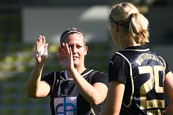 Nach dem "Herbstmärchen" in China ging es endlich wieder los: am 7.10.2007 stand nach langer Pause wieder ein Spieltag in der ersten Bundesliga der Frauen auf dem Programm. Leider gab es gleich nach langer Abstinenz die Qual der Wahl, denn in Wattenscheid in Essen, eine Halbzeitpause voneinander entfernt, wurden die Partien parallel angepfiffen. Mit der Partie der Wattenscheiderinnen um Weltmeisterin Kerstin Stegemann gegen die junge Saarbrücker Mannschaft beheimatete das Lorheidestadion gleich eine durchaus interessante Partie. Dies honorierten auch die Zuschauer im Zuge des WM-Hypes: auch wenn "nebenan" in Essen die dreifache Zuschauerzahl zu verzeichnen war, fanden immerhin gut 1000 Menschen den Weg in die Lorheide.