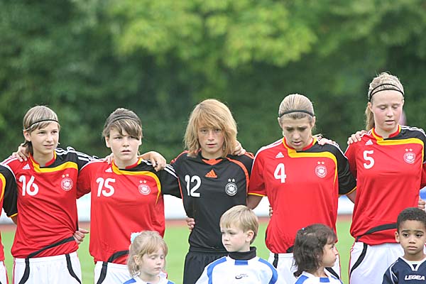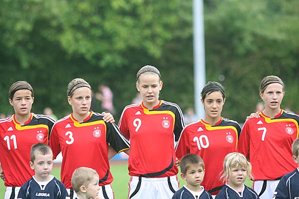 Das Team von Bettina Wiegmann machte von Anfang an den besseren Eindruck, nahm das Spiel in die Hand und setzte mit einem Schuss von Jennifer Cramer von der Strafraumgrenze in der 7. Minute
