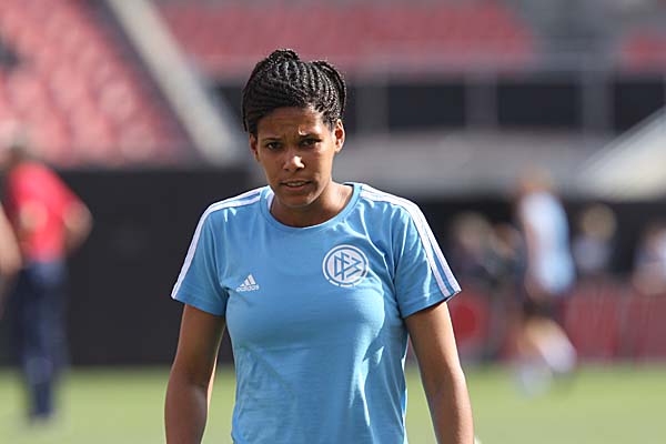 ablegen, die zum einen souverän ins lange Eck einschob und zum anderen die Frage aufwarf, wo in diesem Moment die deutsche Innenverteidigung Krahn-Bartusiak wohl zu suchen war. Eine Minute später versuchte sich dann Linda Bresonik in einem Zweikampf