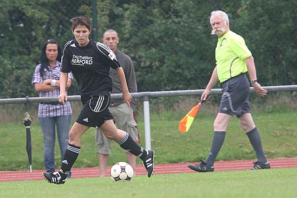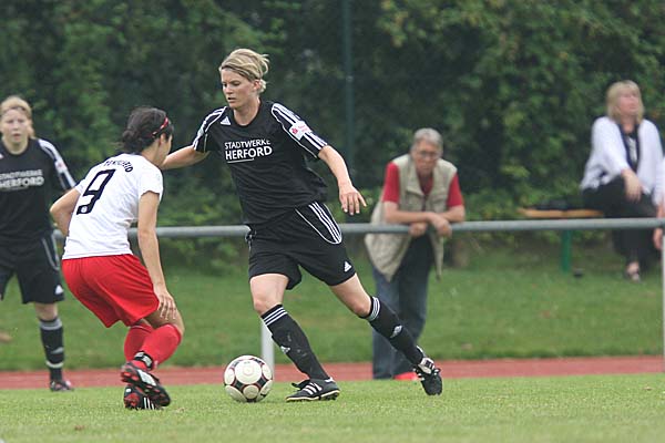zimmerte die ehemalige Duisburgerin den Ball aus etwa 30 Metern unter die Latte - auch wenn die Herforder Bank darüber philosophierte, wie Torhüter-Stammkraft Sonja Speckmann wohl bei diesem Versuch verfahren wäre und