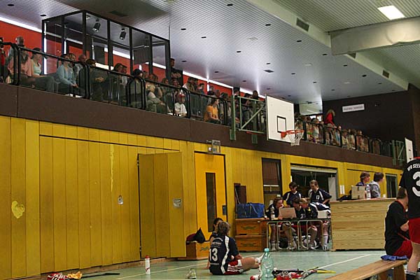 Zeit für das große Spiel: um 14 Uhr war es endlich soweit: mit dem VfR Seebergen und dem Wyker Tb trafen die wohl beiden besten Teams des Turniers aufeinander. Inzwischen war die Halle auch durchaus ordentlich gefüllt, die zirka 150 Zuschauer