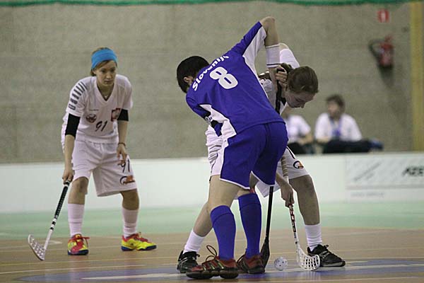 Als letzte Partie des ersten Turniertages stiegen die Gastgeberinnen in den Ring und hatten es mit den vermeidlich deutlich unterlegegen Sloweninnen zu tun. Doch der Gastgeber tat sich sehr schwer mit dem überraschend schweren Gegner. Selbst die polnische Führung durch Julia Jurkowska war eher glücklich - zappelte der Ball doch nach einem eher harmlosen Weitschuss plötzlich im Netz von Tanja Matijasevic, die zwar viele Bälle nur abprallen liess, aber letztlich mit guten Paraden einen höheren Spielstand nach 60 Minuten ebenso verhinderte wie eine kämpferisch-starke Defensive. Trotzdem waren die Polinnen an diesem Tag einfach mehr als eine Nummer zu gross für die Südosteurpäerinnen und zeigten auch die technisch sicherste und athlethischste Leistung aller sechs Teams an diesem Abend. Dass aber das letzte Drittel sogar noch dank des Ehrentreffers von Nela Mlinar in der 50. Minute verlorenging, war für die Gastgeberinnen in einer sehr gut gefüllten Halle doch mehr als peinlich - für die nominelle Heimmannschaft war es hingegen der verdiente Lohn für beeindruckende Mühen, der mit etwas Glück vielleicht sogar vom dritten Qualfikationsplatz sanft träumen lässt.