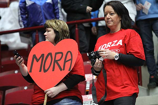 nach einem Pass von Elin Tjärnström am langen Pfosten zu frei - die sportliche Hypothek von Mora war nun auf bereits vier Tore angewachsen - die Hoffnungen schienen doch nun relativ unbegründet, dass hier nach Spielende noch der Außenseiter den nagelneuen Pokal