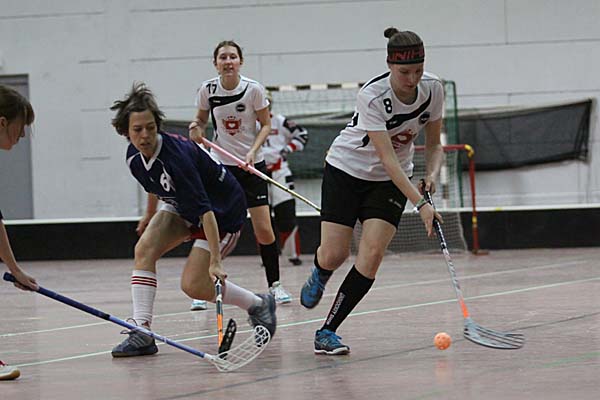 Verlängerung nicht wirklich verankert war. Diese schloss letztlich der ASV siegreich ab: nach vier Minuten bediente Anna Schulte-Herbrüggen Diercks, die mit ihrem zweiten Treffer für einen aus Sicht der Floorball Queens versöhnlichen Abschluss
